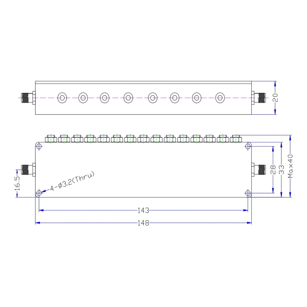 Read more 16-Port, Panel Sector Antenna, 65° HBW, (2x) 694-960/(6x) 1710-2690 MHz, 16.5/16.5/18/17.5/18/17.5/18/17.5 dBi, 2-12°T, 2.750 m