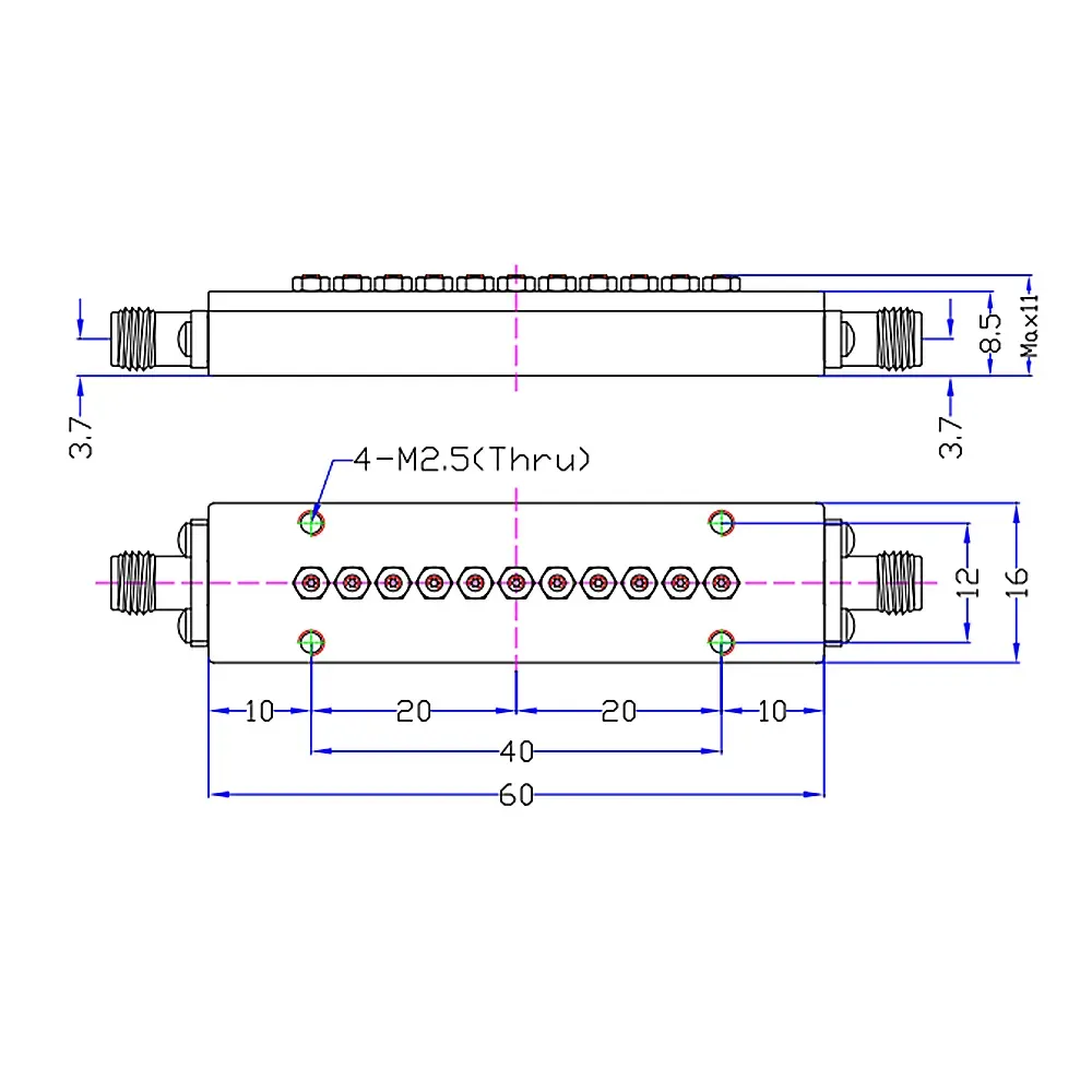 2496 ~ 2690MHz Cavity Band Pass Filter