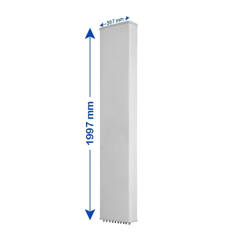 10-Port, Panel Antenna, 65° HBW, 690-960/(2x) 1695-2690/(2x) 3300-3800 MHz, 16/16/16/18/18 dBi, 2-12° T, 1.997 m