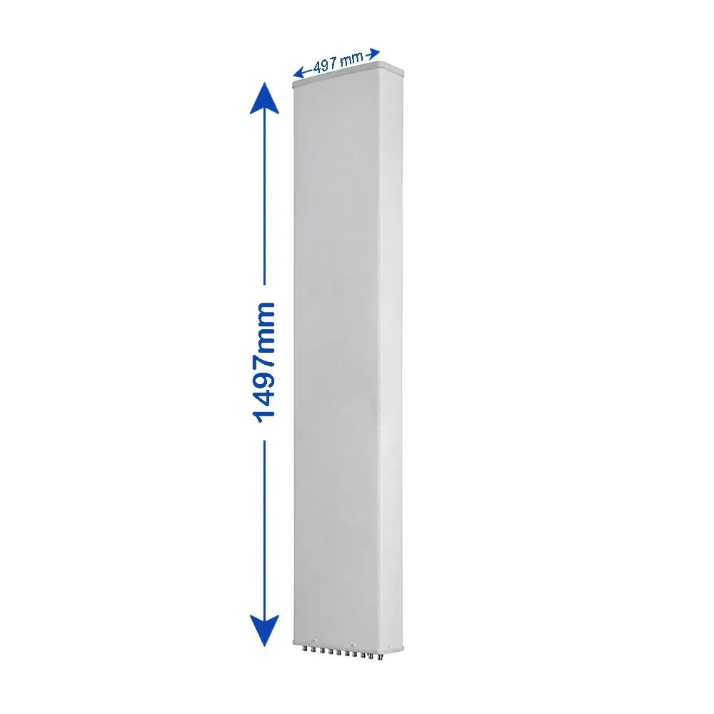 10-Port, Panel Sector Antenna, 65° HBW, (2x) 690-960/1427-2170/(2x) 1695-2690 MHz, 14.5/14.5/18/18/18 dBi, 2-12°T, 1.497 m
