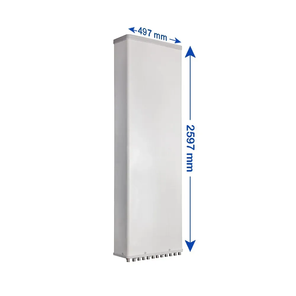 12-Port, Hybrid SplitBeam Panel Sector Antenna, (2x) 65°/ (4x) 33° HBW, (2x) 698-960/(4x) 1710-2690 MHz, 17/17/19/19/19/19 dBi, 2-12°T, 2.597 m