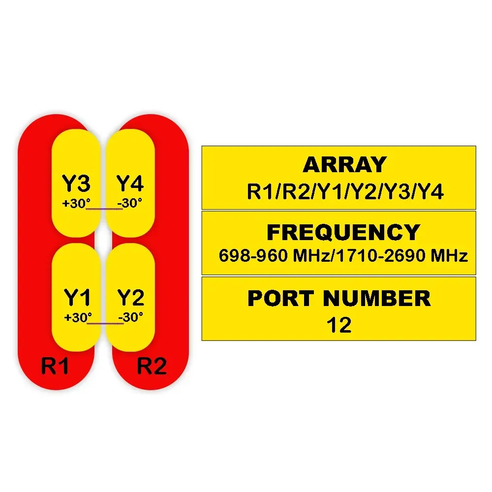 | 12-Port Antenna | R1 | R2 | Y1 | Y2 | Y3 | Y4 |