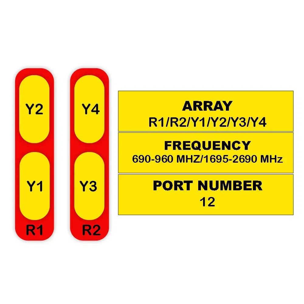 | 12-Port Antenna | R1 | R2 | Y1 | Y2 | Y3 | Y4 |