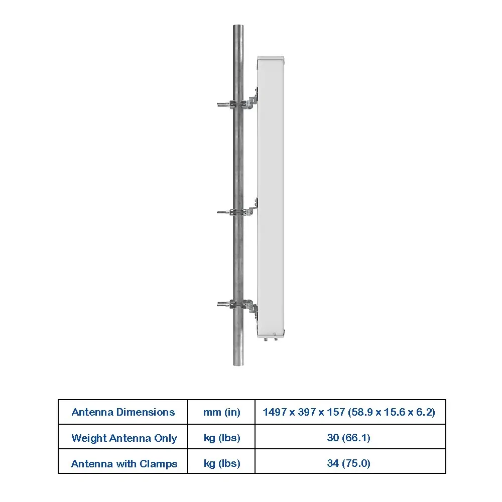 | Gain | 15 dBi | 15 dBi | 14.5 dBi | 18 dBi | 15 dBi | 14.5 dBi |