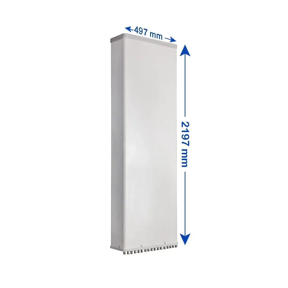 17-Port, TDD Hybrid Panel Antenna, 65° HBW, (2x) 690-960/(2x) 1695-2690/2300-2400 MHz, 16/16/18/18/16 dBi, 2-10°T, 2.197 m