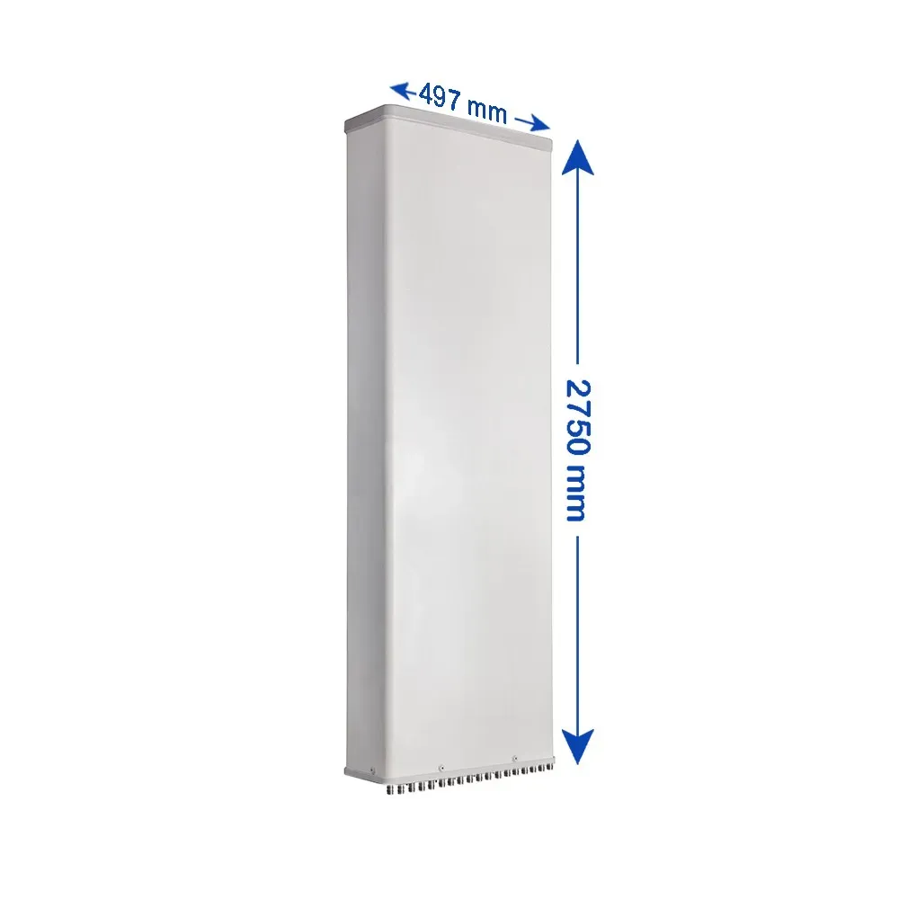 18-Port, Panel Sector, 65° HBW, (2x) 694-862 / (2x) 880-960/(5x) 1695-2690 MHz, (4x) 16.5 / 18/17.5/18/18/17.5 dBi, 2-12°T, 2.750 m