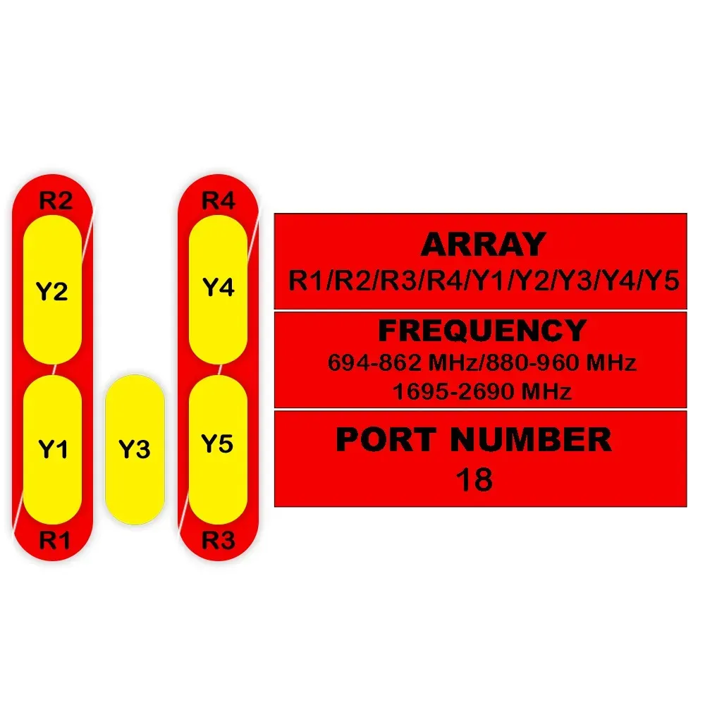 | 18-Port Antenna | R1 | R2 | R3 | R4 | Y1 | Y2 | Y3 | Y4 | Y5 |