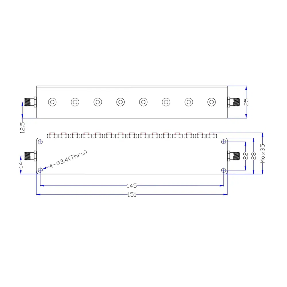 3595-3645MHz Cavity Band Pass Filter