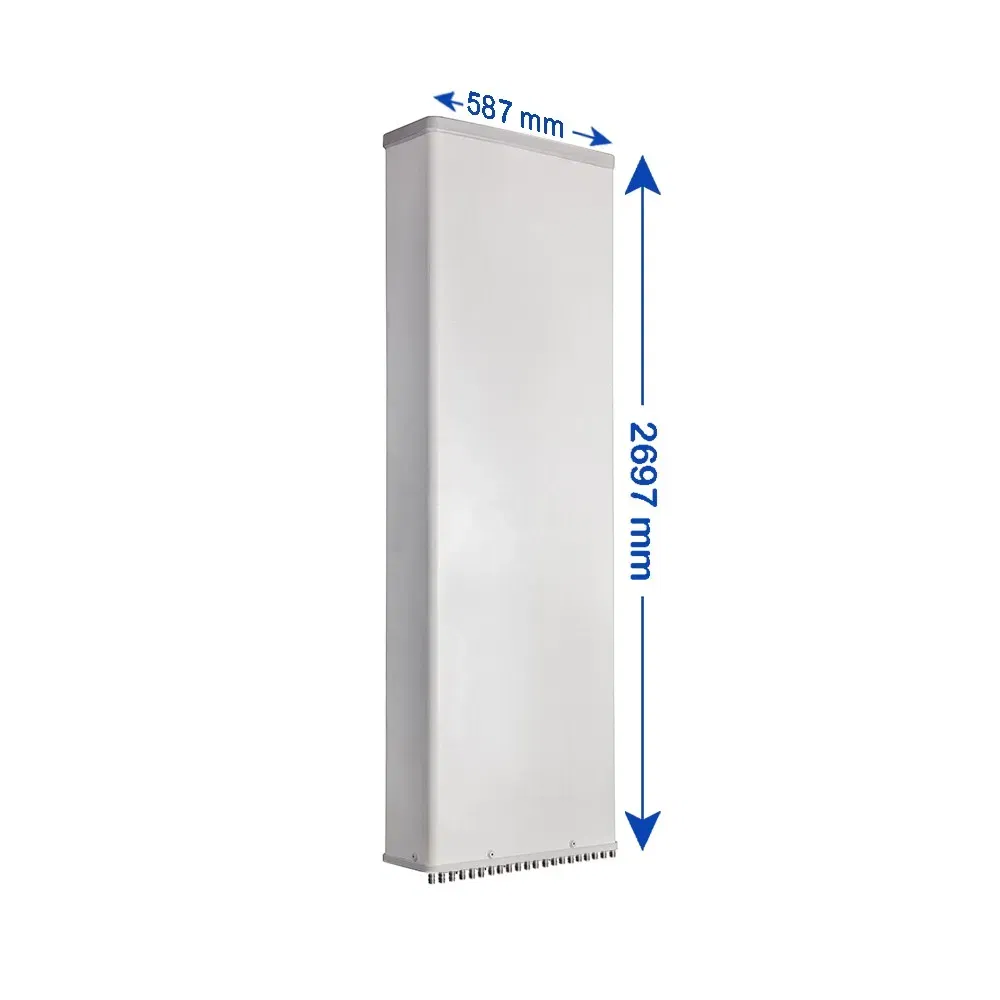 21-Port, TDD Hybrid Split Beam Panel Antenna, (2x) 65°/90°/(4x) 33° HBW, (2x) 698-960/2300-2690/(4x) 1710-2690 MHz, 17/17/16/19.5/19.5/19.5/19.5 dBi, 2-12°T, 2.697 m