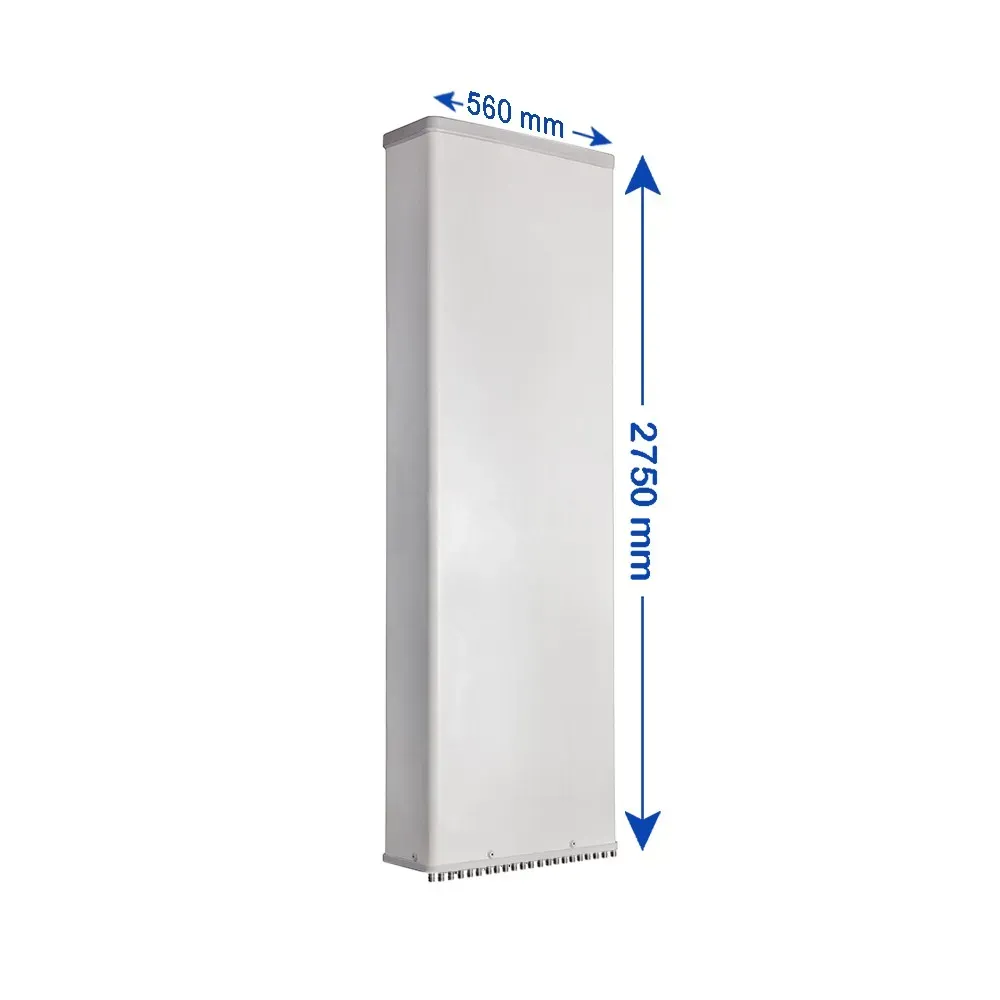 22-Port, Panel Sector Antenna, 65° HBW, 617-806/894-960/617-894/(4x) 1695-2200/(2x) 1427-1518/ (2x) 2300-2690 MHz, 16/16.5/16.5/17.5/17.5/17/17/15.5/15.5/17.5/17.5 dBi, 2-12°T, 2.750 m