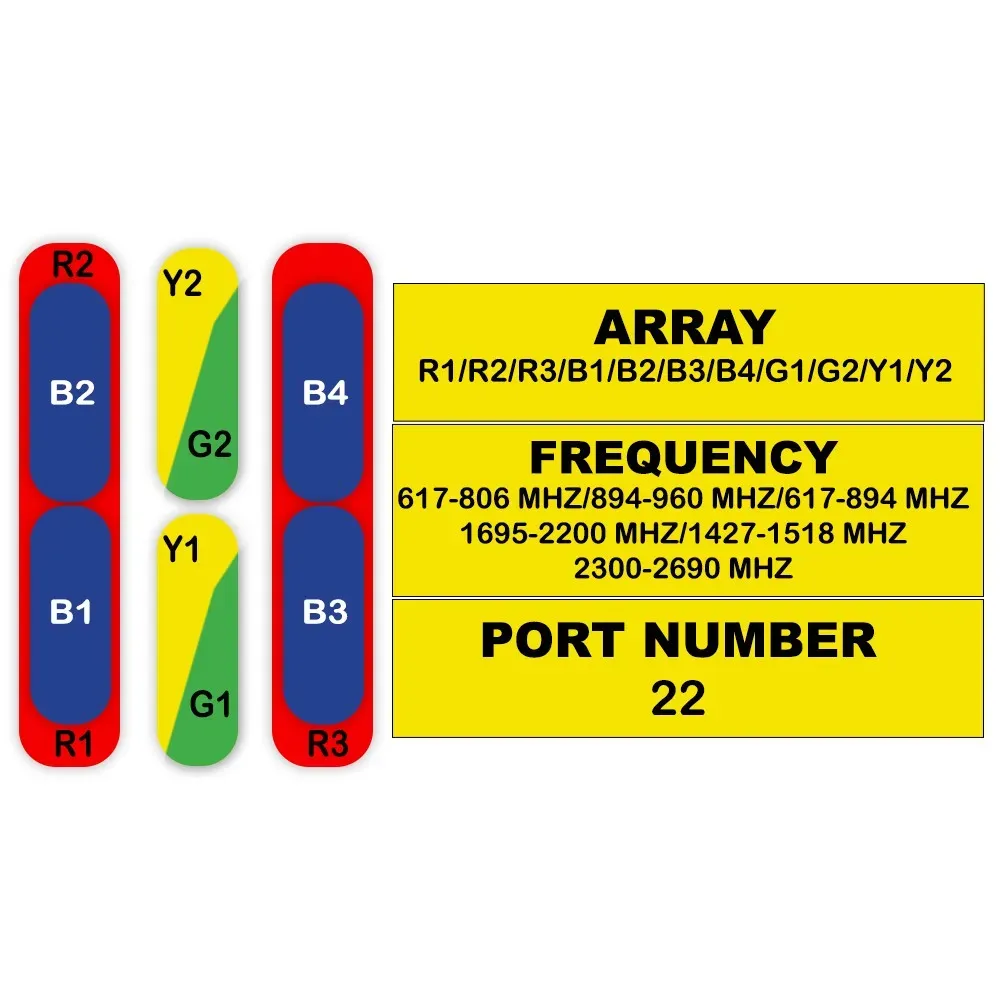 | 22-Port Antenna | R1 | R2 | R3 | B1 | B2 | B3 | B4 | G1 | G2 | Y1 | Y2 |