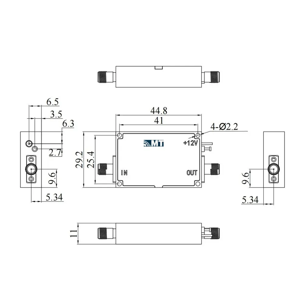 Low Noise Amplifier 0.01-3GHz, NF:2.0dB, Gain:44dB,P1dB:20dBm