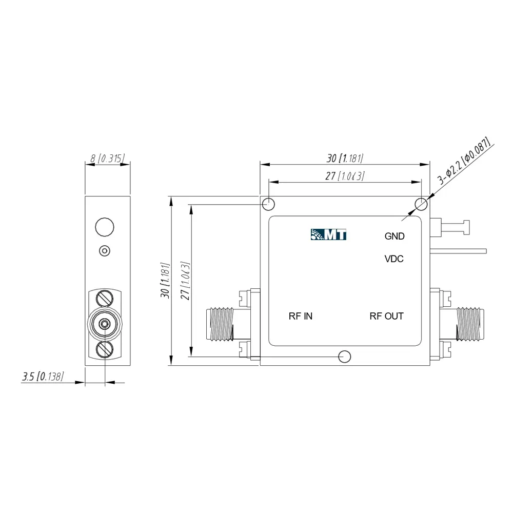 Low Noise Amplifier 0.1-26.5GHz, NF:6.0dB, Gain:18dB,P1dB:14dBm