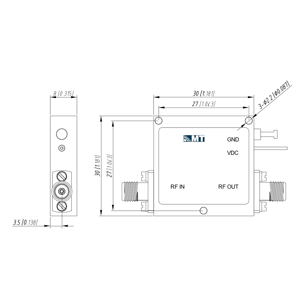 Low Noise Amplifier 0.1-26.5GHz, NF:6.0dB, Gain:18dB,P1dB:14dBm