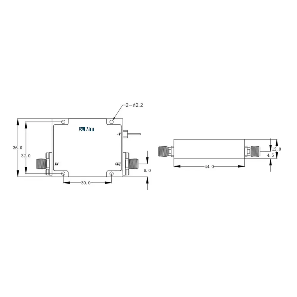 Low Noise Amplifier 0.5-40GHz, NF:5.0dB, Gain:43dB,P1dB:18dBm