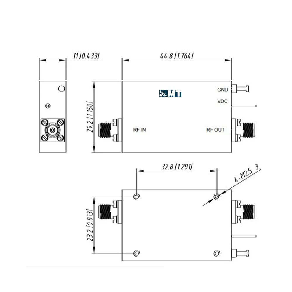 Low Noise Amplifier 0.5-8GHz, NF:2.5dB, Gain:32dB,P1dB:15dBm