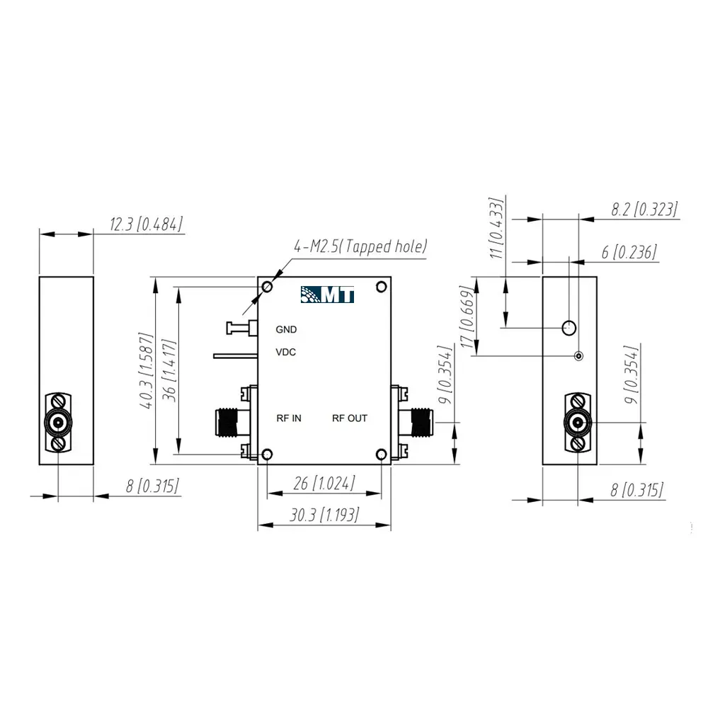Low Noise Amplifier 0.5-8GHz, NF:2.5dB, Gain:35dB,P1dB:29dBm