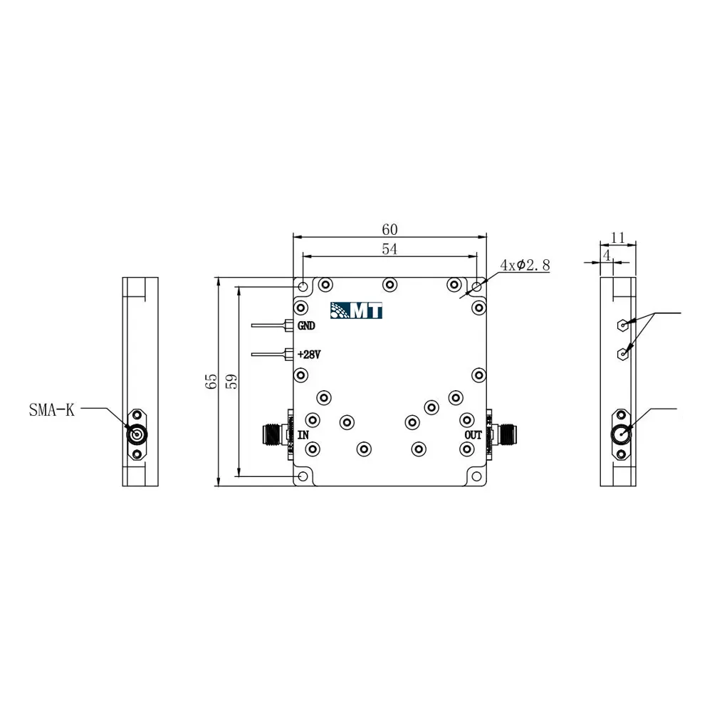 Low Noise Amplifier 1-18GHz, NF:3dB, Gain:50dB,P1dB:15dBm