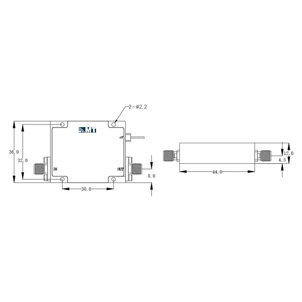 Low Noise Amplifier 1-40GHz, NF:5.0dB, Gain:36dB,P1dB:15dBm