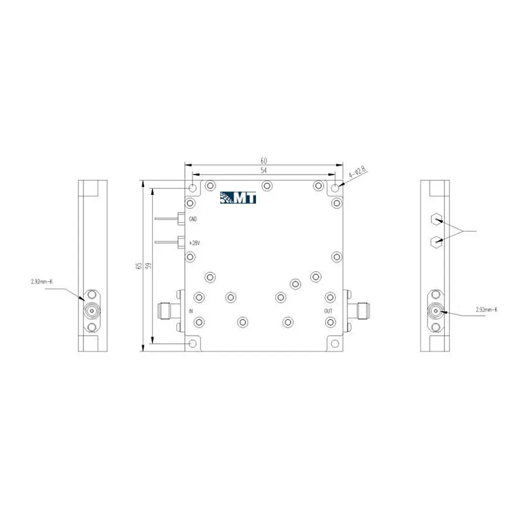 Low Noise Amplifier 18-40GHz, NF:5.0dB, Gain:40dB,P1dB:20dBm