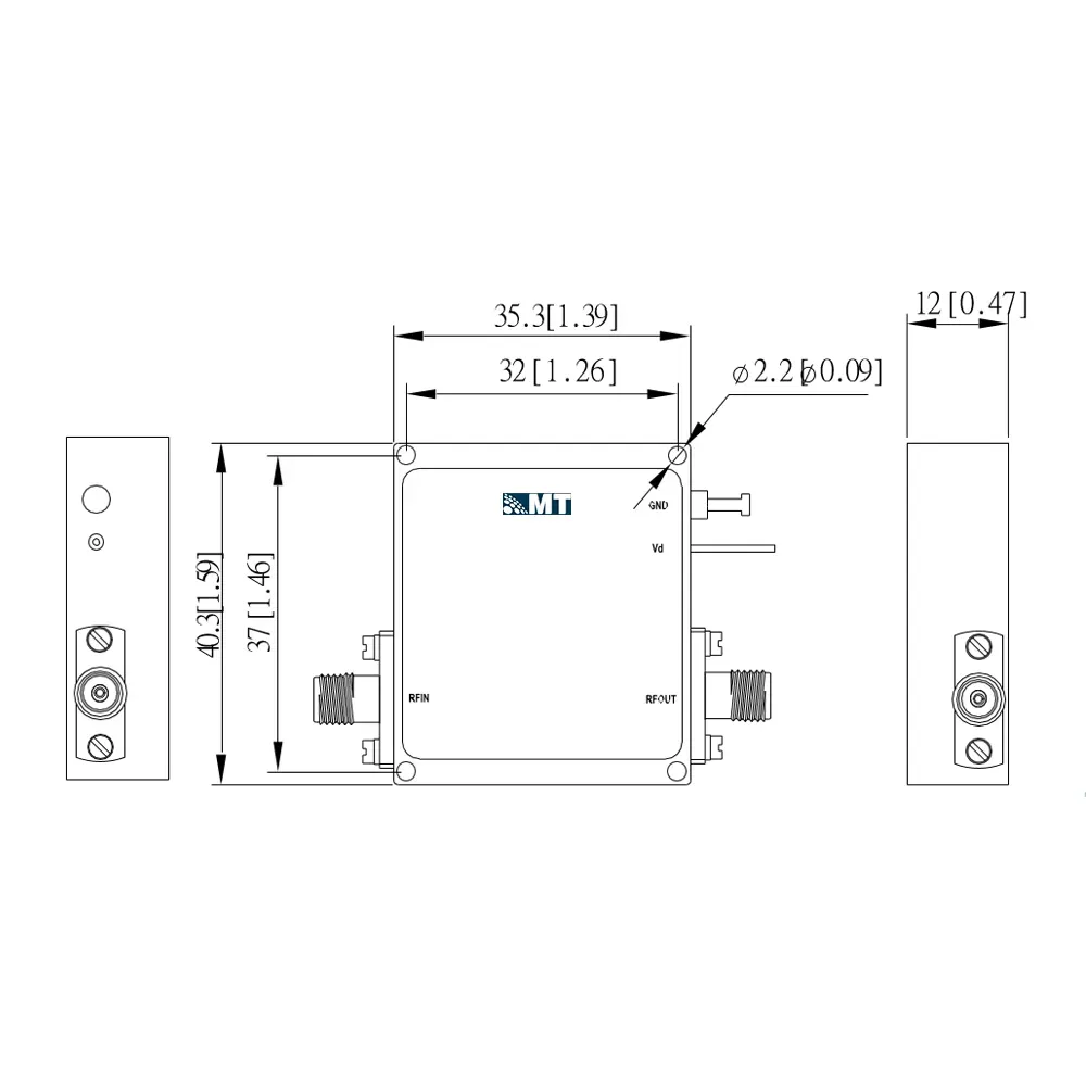 Low Noise Amplifier 2-40GHz, NF:4.0dB, Gain:43 dB,P1dB:18dBm