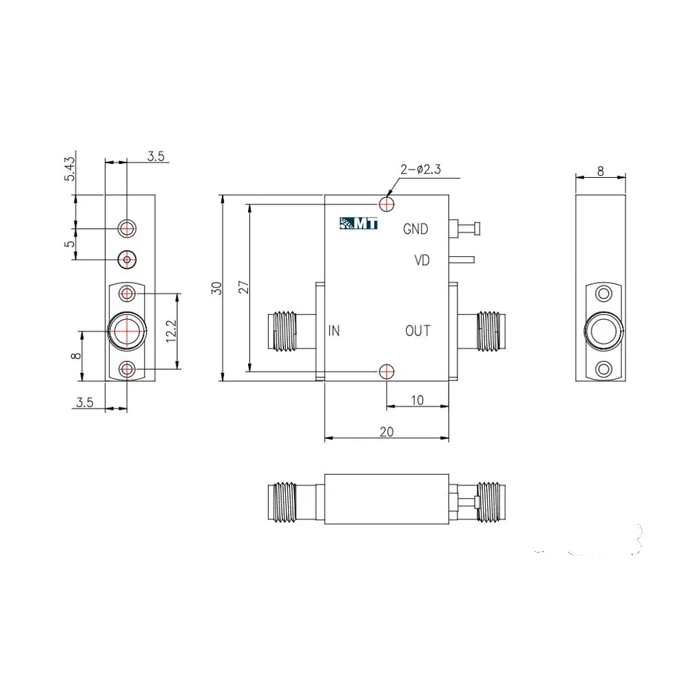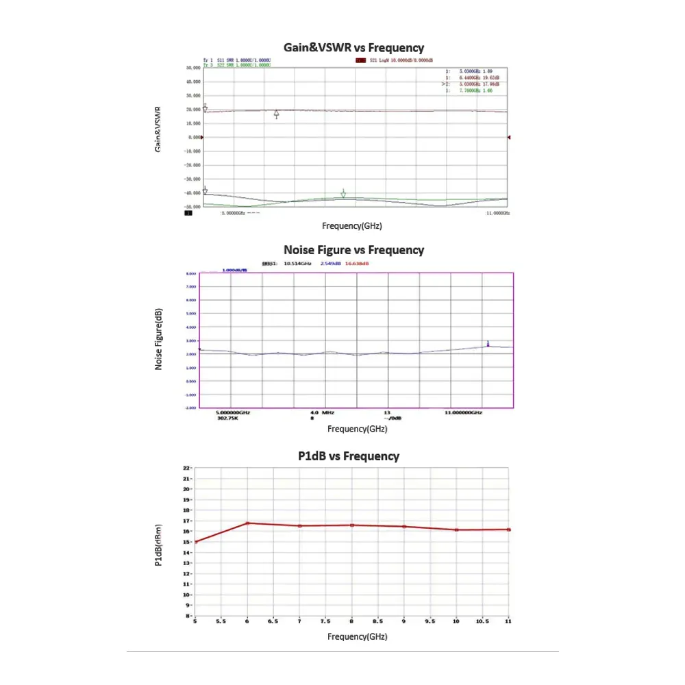 Low Noise Amplifier 5-11GHz, NF:2.5dB, Gain:19dB,P1dB:16dBm