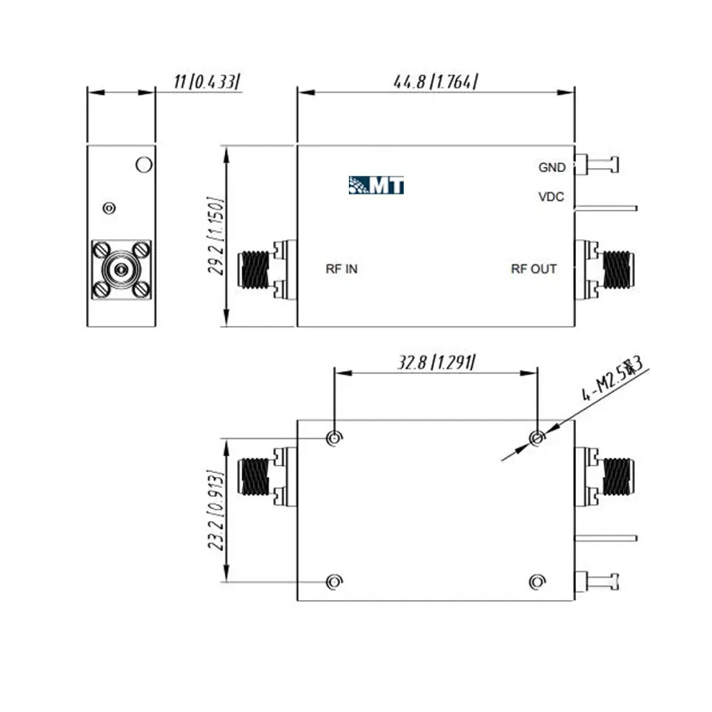 Low Noise Amplifier 50KHz-43GHz, NF:5.0dB, Gain:15dB
