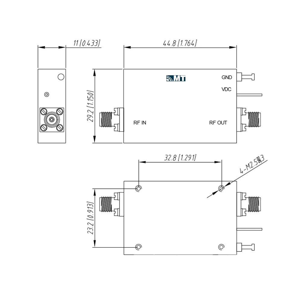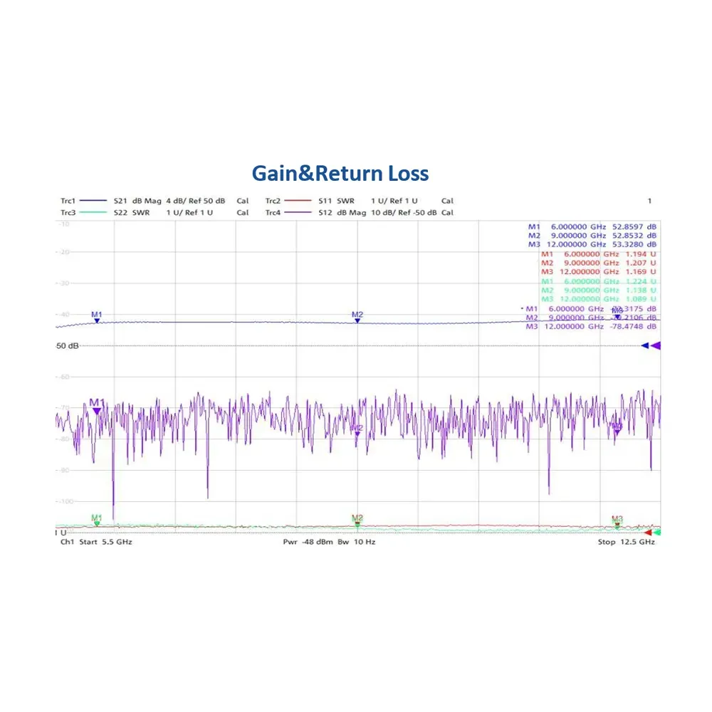 Low Noise Amplifier 6-12GHz, NF:2.0dB, Gain:50 dB,P1dB:10dBm