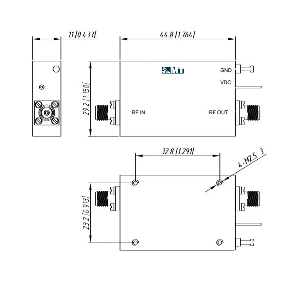 Low Noise Amplifier 6-26.5GHz, NF:2.0dB, Gain:18dB,P1dB:13dBm